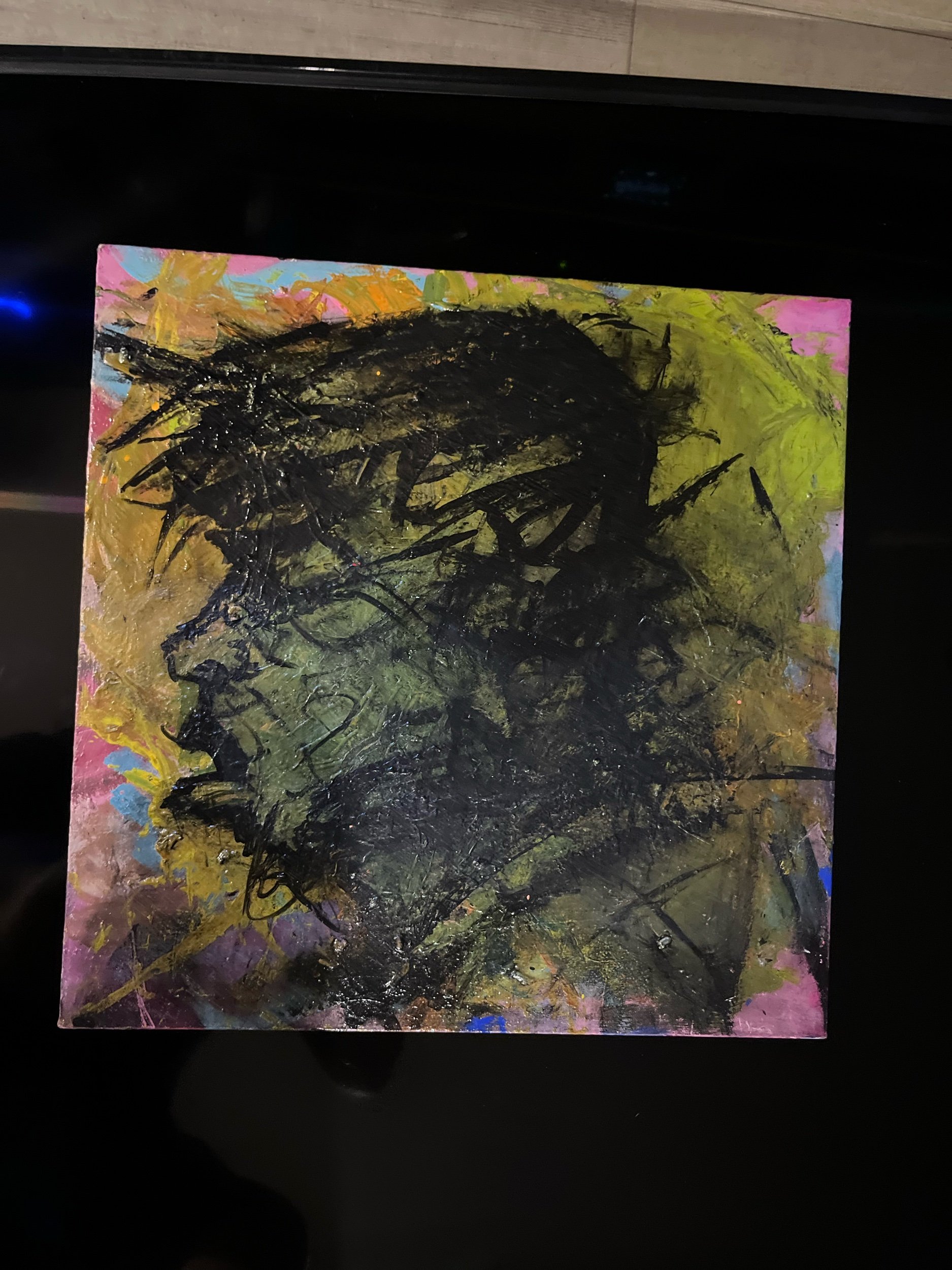 Many people who’ve seen this piece say they recognize Trump within it — though I think it’s probably just the hair. My original intention was to paint a dragon, but as the process unfolded, things became chaotic. I decided to pause and let the work dry.